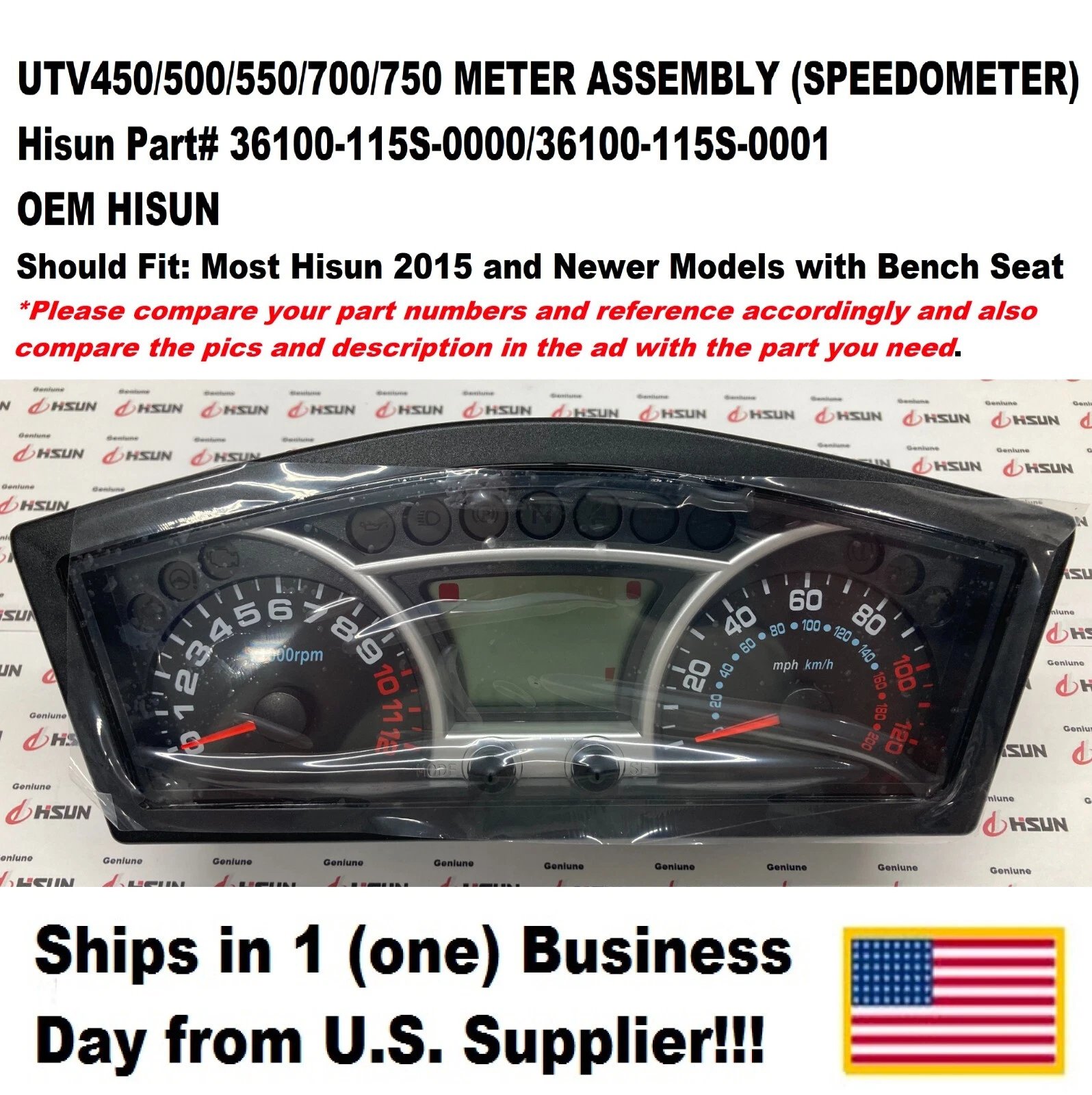 UTV 450 / 500 / 550 / 700 / 750 METER ASSEMBLY (SPEEDOMETER) – HISUN #36100-115S-0000 / 36100-115S-0001 Condition: New Brand: Hisun OEM MPN / OEM Part #: 36100-115S-0000, 36100-115S-0001 Country of Manufacture: China Description: OEM Hisun