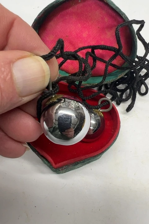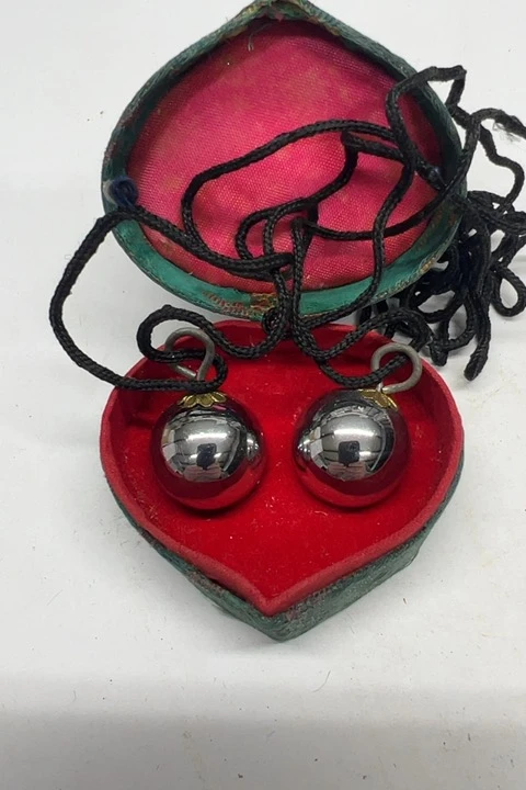 Inspired by traditional Chinese Baoding balls from Baoding, China, these decorative chime pieces reflect a long history of hand-crafted metal spheres associated with relaxation, focus, and ornamental design. This necklace-style set offers that traditional influence in a compact decorative presentation.