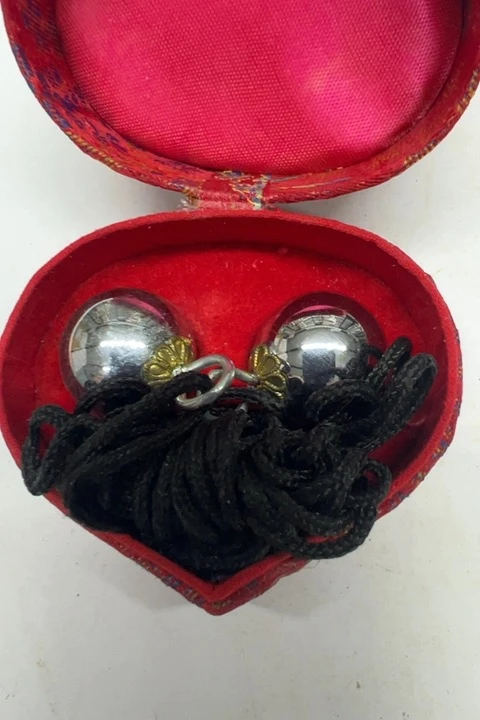 Each ball contains an internal chime. One produces a higher-pitched tone and the other a lower-pitched tone. When moved, the two tones create a light rhythmic sound associated with traditional Chinese chime balls.