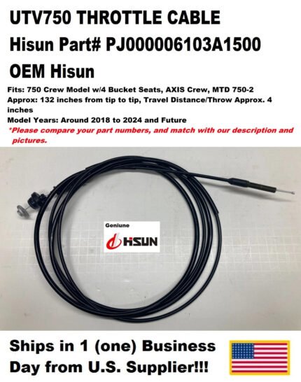 HISUN 400CC UTV THROTTLE CABLE 61030-112-0000 Condition: New Part Number: 61030-112-0000 Product Description: Factory replacement throttle cable for Hisun 400cc UTVs. Genuine OEM component designed to maintain proper throttle control and re