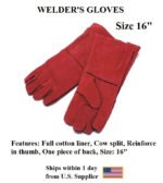 WELDER’S GLOVES – SINGLE PAIR (OUR ITEM# GLOVES-CBB-ELDER2-16-1PR) Condition: New MPN / Item Number: Gloves-CBB-ELDER2-16-1PR UPC: Unknown Country of Manufacture: China Manufacturer: Unknown Description: Heavy-duty welder’s gloves made from